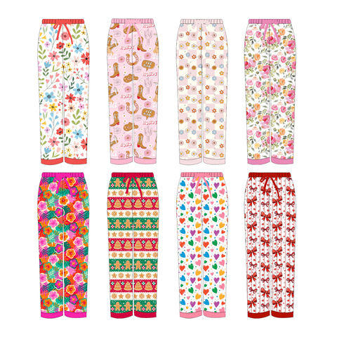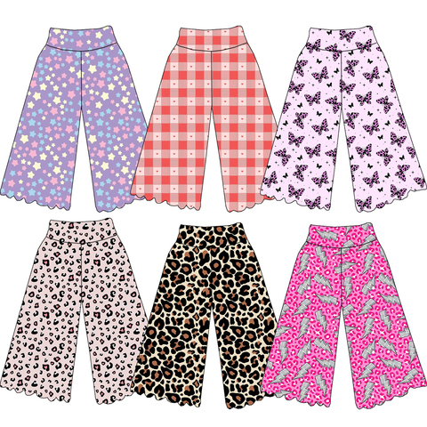 Boutique Kids Niños Pantalones de pierna ancha para niños Estampados de corazones personalizados Pantalones largos de tela amigable con la piel con cuerda sólida