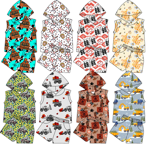 Ropa para niños con logotipo personalizado de alta calidad-Top sin mangas con capucha y bolsillos y pantalones cortos Conjunto de dos piezas