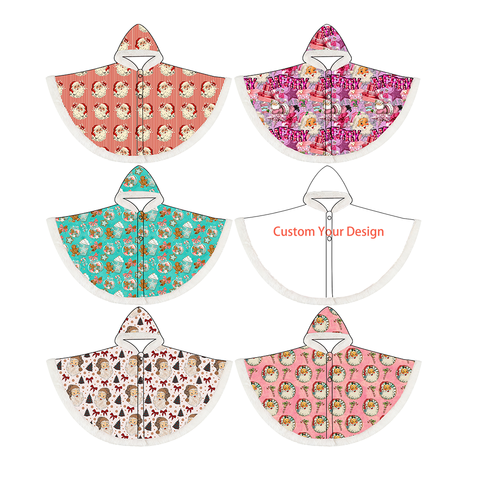 Recién llegado, capa de Navidad con capucha para el Festival de las niñas pequeñas, forro polar Sherpa para el calor, borde blanco esponjoso, lindos motivos navideños
