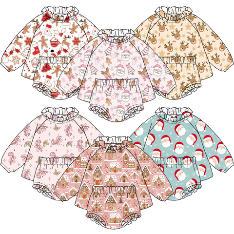 Mamelucos con capucha de manga larga con estampado navideño hecho a medida de otoño para niños de baja MOQ de alta calidad para niñas