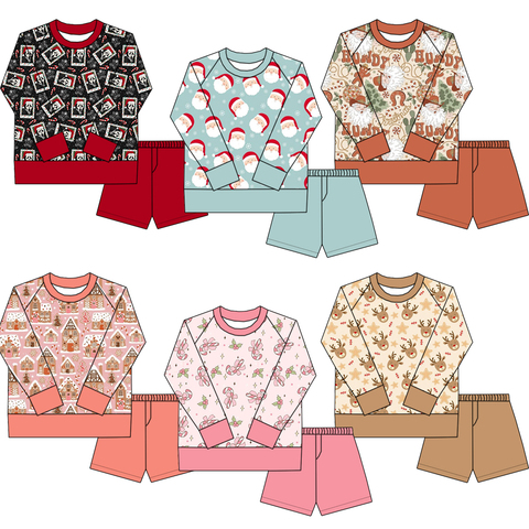 Conjuntos de ropa para niñas, las camisetas de manga larga holgadas con estampado de otoño y Navidad más vendidas para niños con conjuntos de pantalones cortos